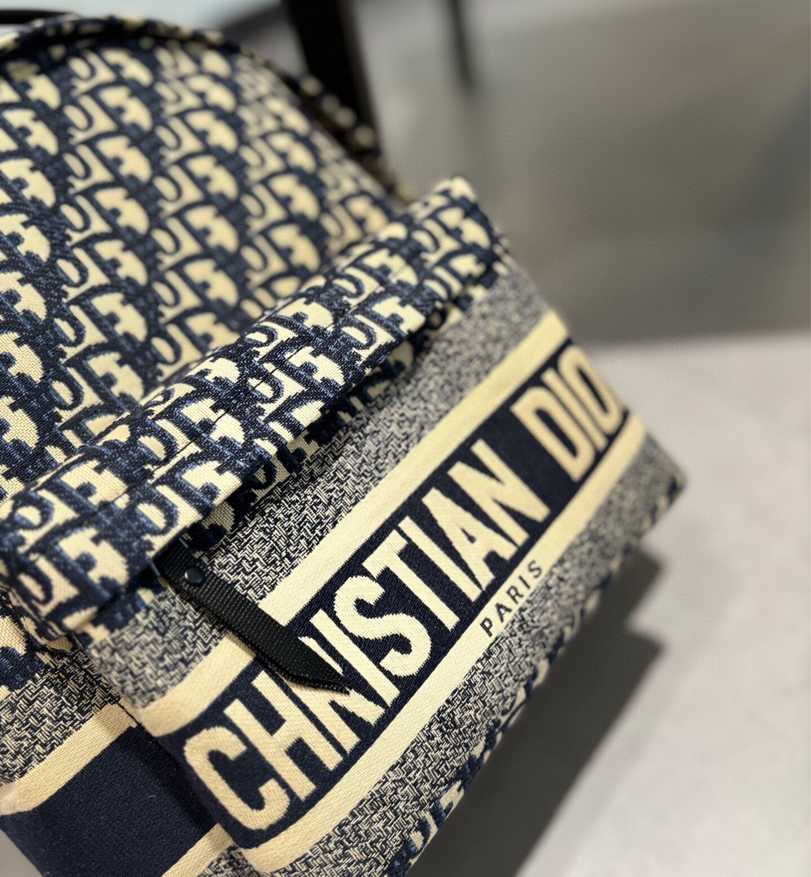 - Water-Resistant Oblique Technical Jacquard: Meticulously crafted from blue water-resistant technical jacquard fabric with Dior’s legendary Oblique print, the backpack delivers a bold, recognizable pattern steeped in the brand’s design legacy while offering practical durability for daily use.