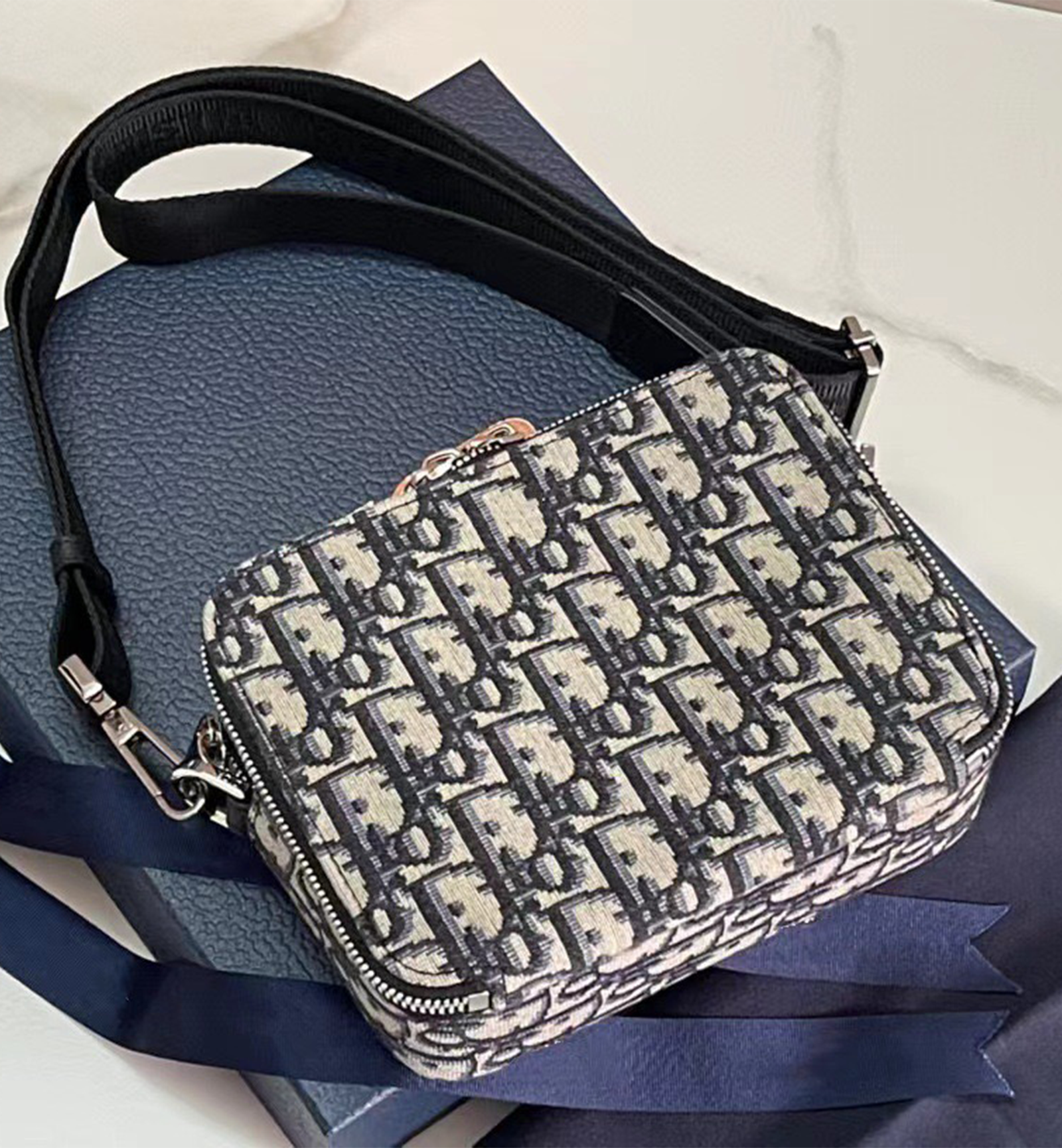 Elevate your accessory game with the Dior Zipper Clutch with Shoulder Strap—a stylish tribute to Dior’s iconic 1969 Oblique print, blending retro-inspired design, functional organization, and versatile wear for the modern trendsetter.