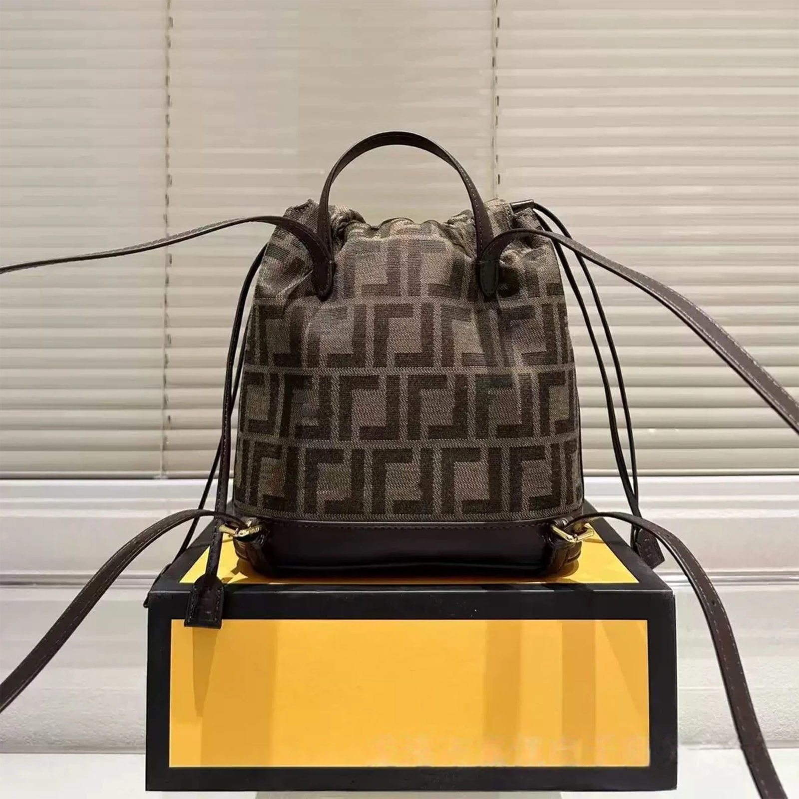 - FF Jacquard Fabric & Leather Accents: Meticulously crafted from FENDI’s legendary tobacco-brown FF jacquard fabric, paired with deep brown calfskin leather details and gold-tone hardware (including the signature FF buckle), the bag delivers a timeless aesthetic steeped in the house’s legacy. The fabric and leather construction ensures durability, while the Fabric liningadds a refined touch.