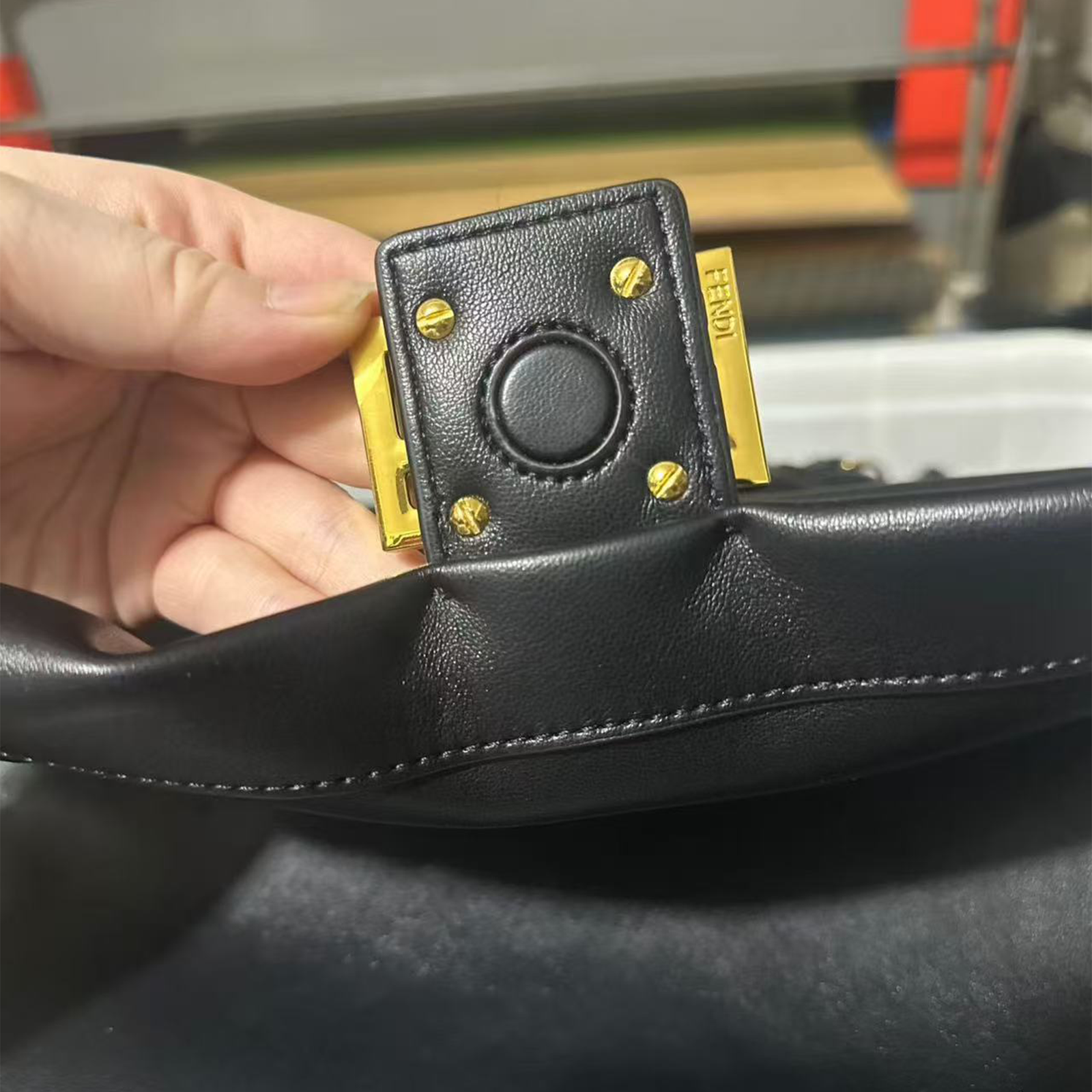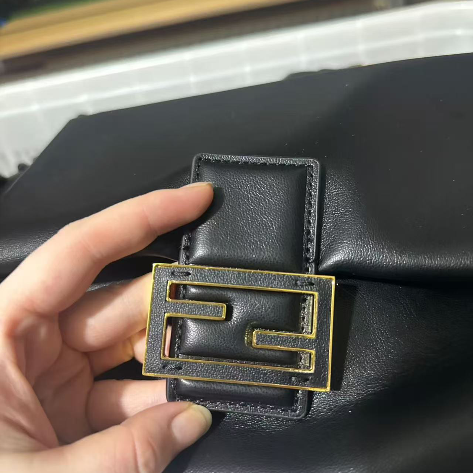 - Soft Black Nappa Lambskin & Gold-Tone Hardware: Meticulously crafted from 100% soft black nappa lambskin, paired with an oversized gold-tone FF buckle and black leather accents, the bag delivers a sophisticated yet edgy aesthetic. Lined with 100% calfskin suede, every detail exudes luxury.