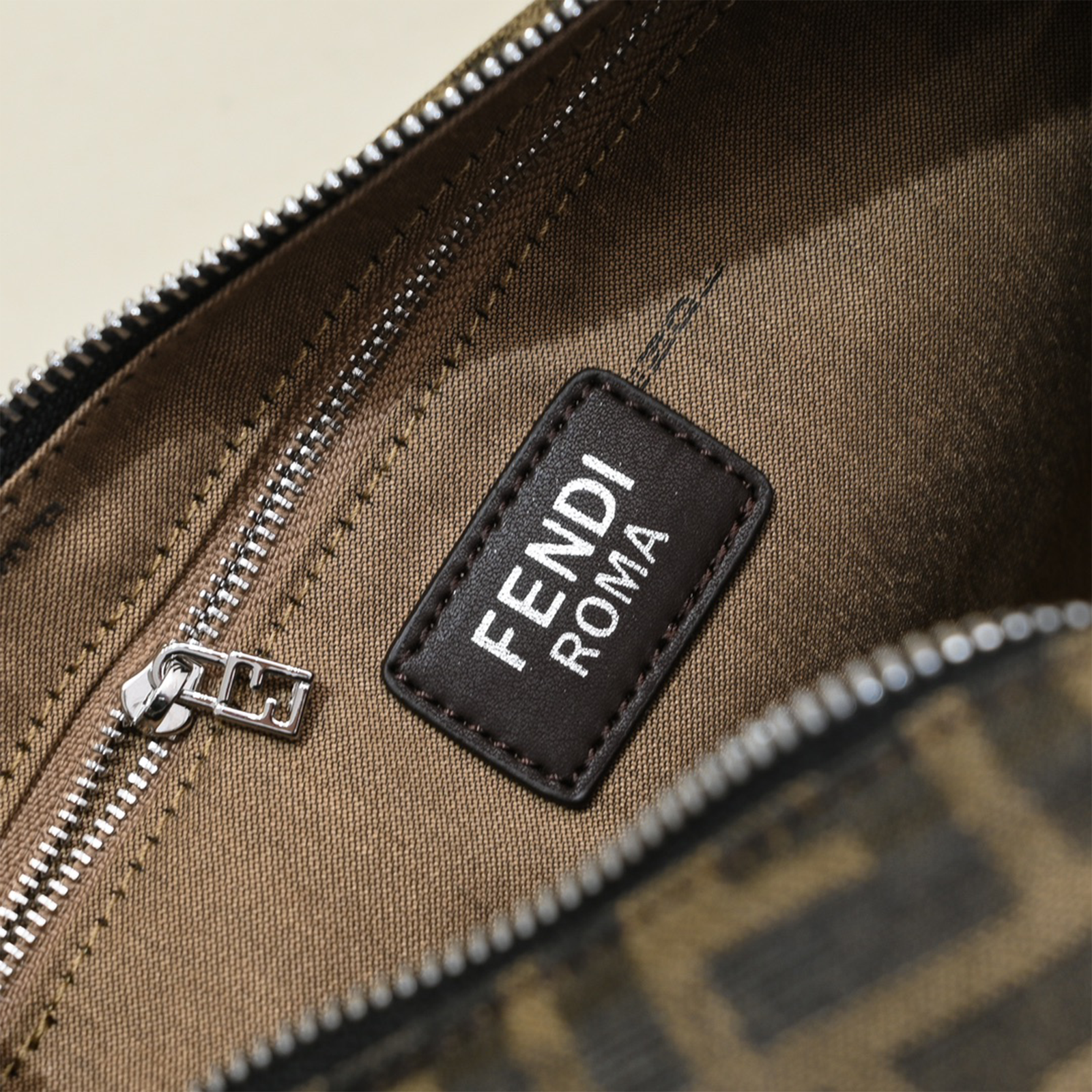 • FF Jacquard & Full-Grain Leather Accents: Meticulously crafted from brown FF jacquard fabric (a durable blend of leather and textiles) and matching full-grain leather, featuring silver-tone FF metal appliqués at the corners. Lined with a polyester-polyurethane blend, every detail exudes sophistication.