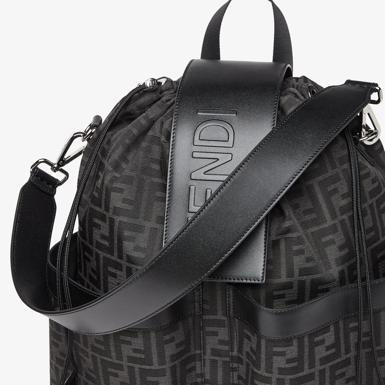 - Urban Silhouette & Organizational Ease: A modern take on the backpack, merging FF monogramming with practical details like dual front pockets, a drawstring closure, and an internal zip pocket—ideal for keeping work, travel, or daily essentials secure and accessible.