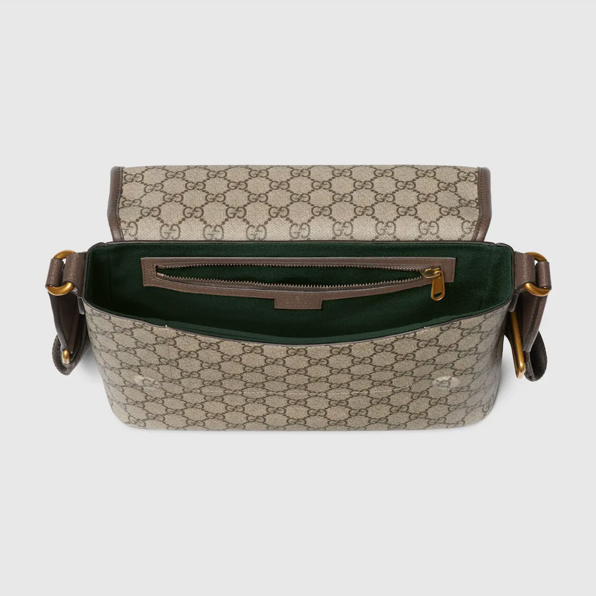 - GG Coated Canvas & Leather Accents: Meticulously crafted from Gucci’s legendary beige and dark brown GG coated canvas, paired with premium dark brown leather trim and gold-tone hardware, the bag delivers a timeless aesthetic steeped in the house’s legacy. Complemented by a deep green linen-cotton blend lining and the signature Double G emblem, every detail exudes sophistication.