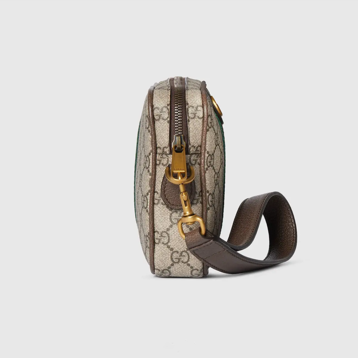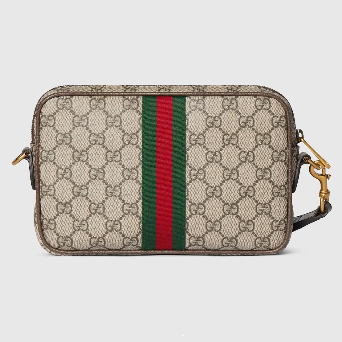• Material: GG Coated Canvas + Dark Brown Leather Trim + Gold-Tone Hardware