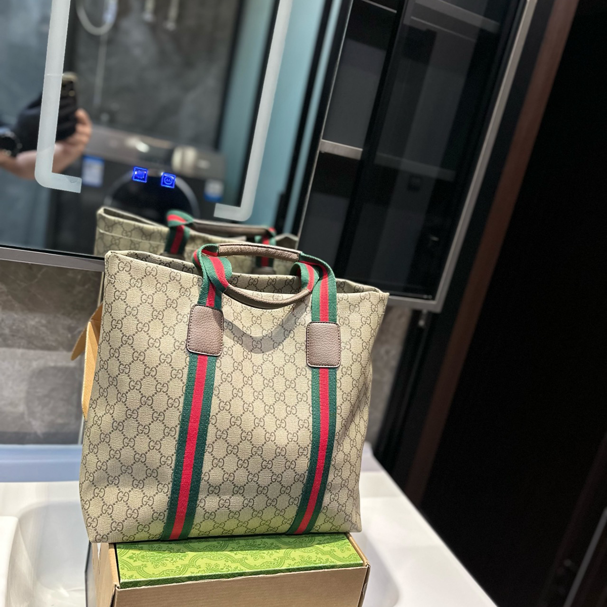 • GG Supreme Tender Canvas & Ribbon Accents: Meticulously crafted from Gucci’s iconic beige and ebony GG Supreme Tender canvas (a soft, durable fabric), paired with signature red-green grosgrain ribbon details and refined hardware, the bag delivers a timeless yet contemporary aesthetic. Complemented by a nylon lining, every detail exudes sophistication.